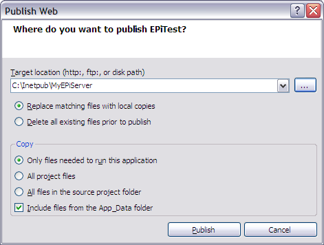There are two basic installations of EPiServer CMS available today, the development installment and the public site (manager installation). The common practice is to work with EPiServer CMS from a developer installation with Visual Studio and continuously update the live site with new and reworked dll’s and templates. The process of deploying a Visual Studio project to a live site is not complicated, but a few steps need to be taken care of.