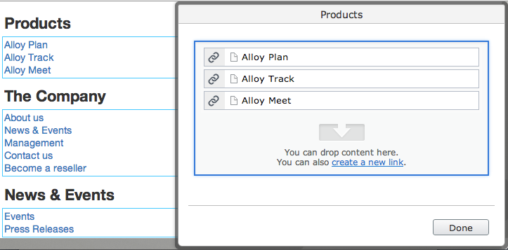 A very common task for editors and marketers is linking to other content. The new link collections support drag and drop of content as well as live preview.