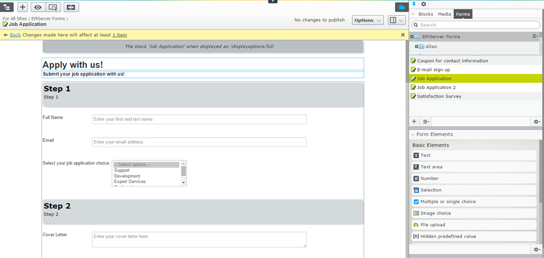 Last week we made the first public beta release of the new Forms available as an add-on on the Episerver Nuget Feed and this Monday we put out the first update to it. Episerver Forms is a long awaited feature that for more years than I care to remember has been on the top 10 most requested editor features. Sure, we've had its predecessor, xforms, for ages – but it has a number of limitations that we have tried to address in this new add-on that takes a completely different architectural approach to allowing editors to easily create forms on their web site – whether those forms are for surveys, contact requests, newsletter signups, job applications, dynamic profile building – or anything else you can imagine. Below I'll try to outline some of the new major advantages to the new Forms.
