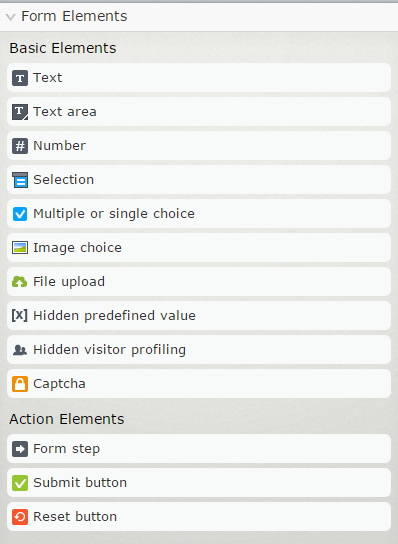 Finally, we have included a bunch of smaller, yet often requested things out of the box – like different types of Form elements. A good example is the File Upload option that allows a visitor to upload a file for you, the Image Choice that allows the visitor to make a selection simply by clicking one of several images you provide – and finally we of course offer a captcha by default to avoid all the spam.