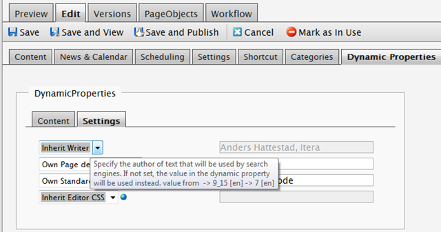The concept is simple, I have one property that have all the dynamic properties inside it. When I save the page, I also save the dynamic properties inside the Page Object store. If the property is set to inherit, I delete the value from the store on this page. But my get value method checks all the stores up to the top to find the value.
