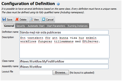 5. Startup EPiServer and go to admin mode and Tools, workflows.