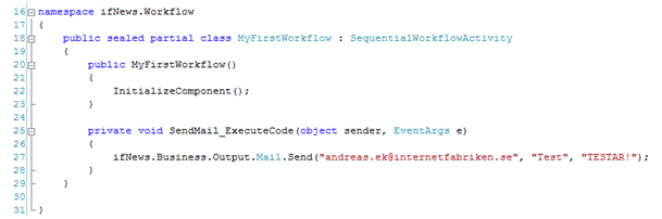 2. Define a code block in your schema, eg SendMail and then double-click it!