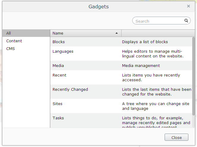 Next we need to add the languages gadget to our website. Go to the edit mode and in one of your panels (I’d suggest the assets panel on the right) choose to add a gadget: