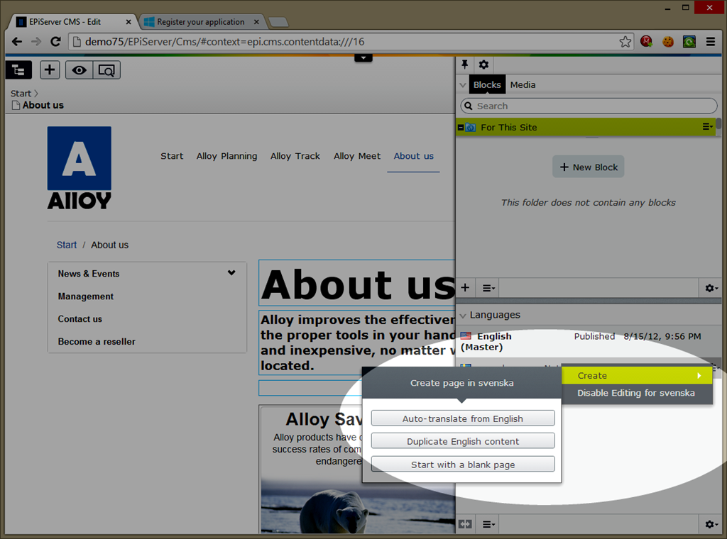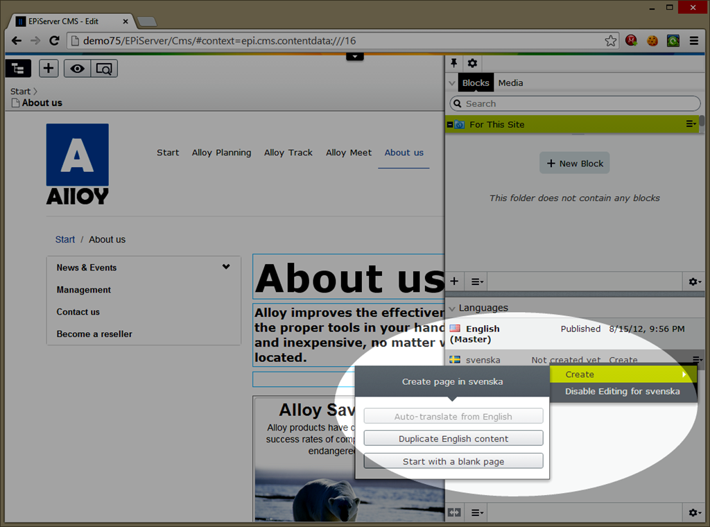 When working with multiple languages on your EPiServer website, you have three options when it comes to translating your content: