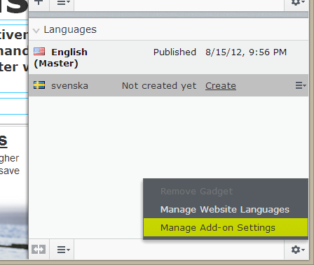 To set this up, click the settings cog in the bottom-right hand corner of the gadget and choose ‘Manage Add-On Settings’:
