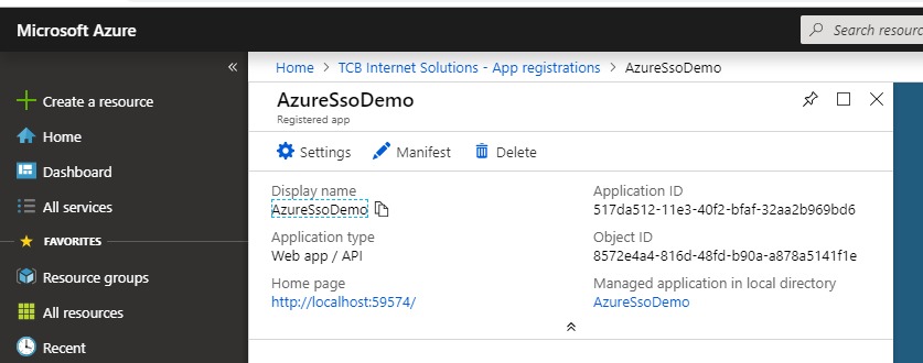 - Properties -> App ID URL -> [set this to the URL of your site, e.g. http://localhost:59574/]