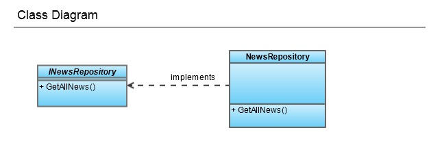 Let's back the tape and say this above was the first simplest implementation but now the customer also wants these cross cutting concerns above implemented plus some extra improvements to GetAllNews(). According to the nice, “you may fool me once” philosophy, it's now time to refactor to a bigger costume according to the single responsibility principle (S) where we split this mixed functionality into separate classes.