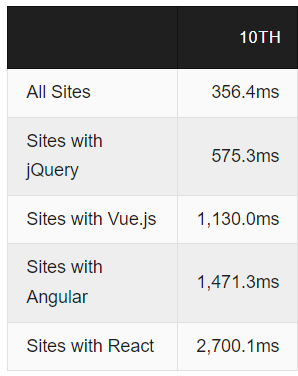 Javascript frameworks like react and vue are fun to use but if something can be decently built using html and css only, do it. If you really need heavy js frameworks for part of your application, then use them on separate pages only to maximize performance for the rest of the application.This is also why my recommendation is also to stay away from headless for normal content heavy parts of the sites and only use for user interaction heavy functionality. Below are statistics of average rendering time depending on framework from httparchive