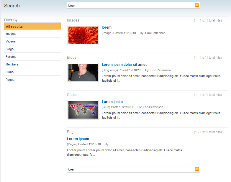 Finally we need to add the LoadPageResult() to LoadAllKindOfElementResult(), method for rendering all searchcategories, as well. Otherwise pages will not show unless the visitor clicks on the menu item for showing pages. This method can be found in SearchResult.aspx.cs.