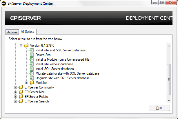And that’s it. Now you can install a new EPiServer CMS website on your computer. Choose the version of CMS you would like to install and then chose Install site and SQL Server database.