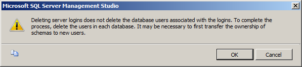 2. Assuming you still have SQL Server Management Studio open from the previous steps, expand the “Security” node and its child “Logins” node (if you do not have this installed google for the instructions to delete users via the available command line tools).