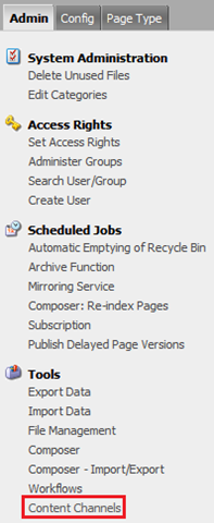 2) Navigate to the Admin tab and select “Content Channels” from the “Tools” menu.