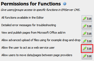 6) Navigate to the “Allow the user to act as a web service user” item and select “Edit”.