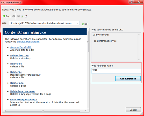 2) Create a new Visual Studio (VS) project using the appropriate EPiServer Content Channel WebService.