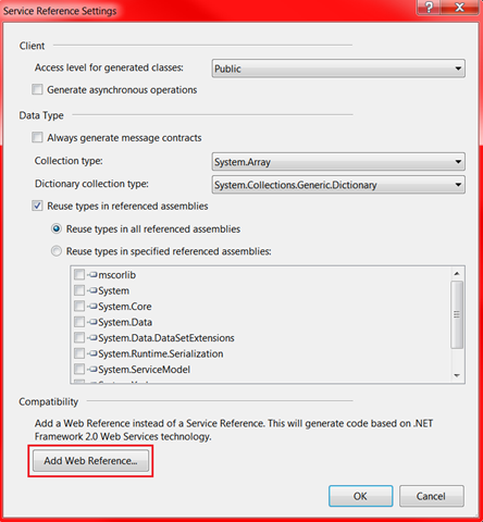 4) Select the “Add Web Reference…” button.