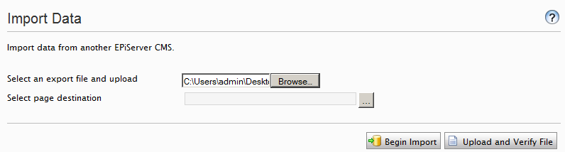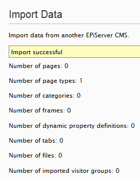 - Select the import file (.episerverdata file) from your sites root directory in a folder called “install”