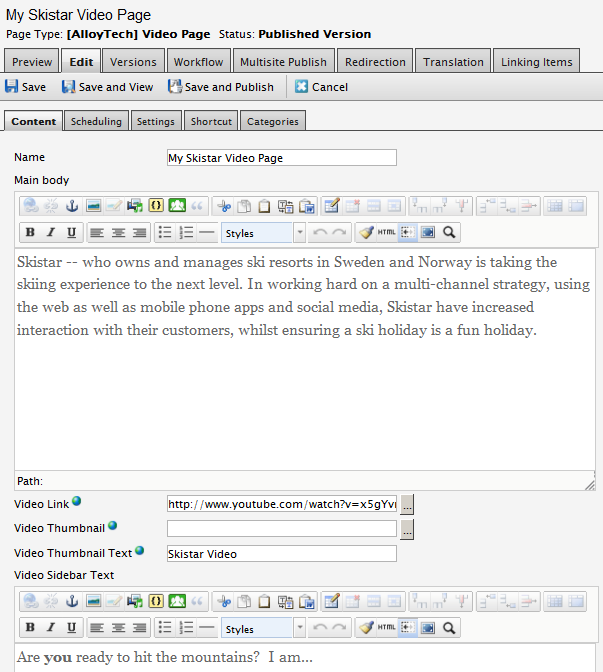 This is not intended to be the “end all” Video Page Type and there’s plenty of room for improvements. However, this should be a good starting point for your Video Page needs and great for demos in Alloy Technologies as is!