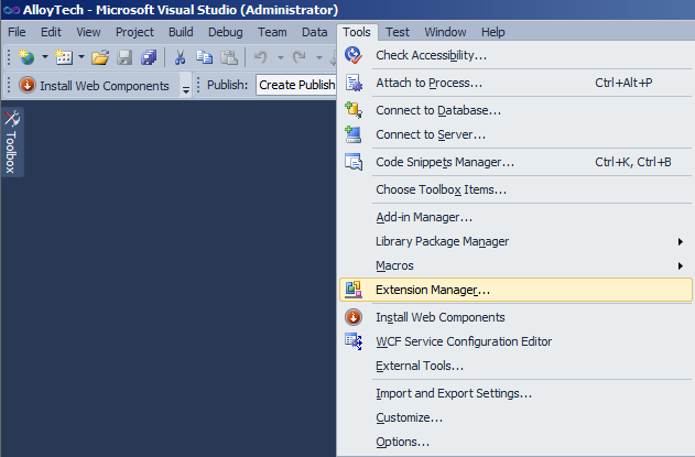 - Navigate to the Tools~Extension Manager menu