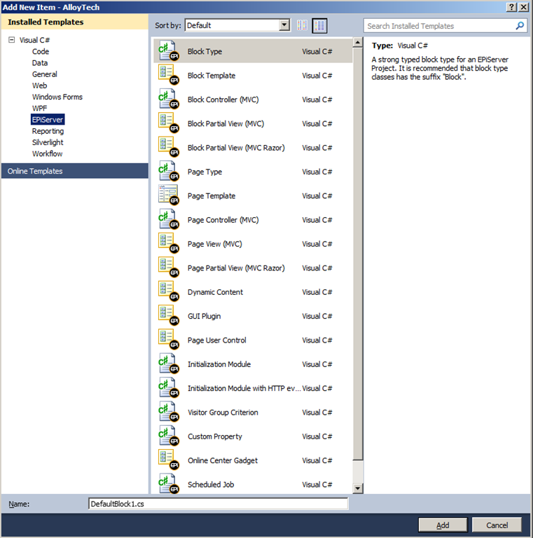 - Look for the somewhat obvious “EPiServer CMS Visual Studio Integration” item