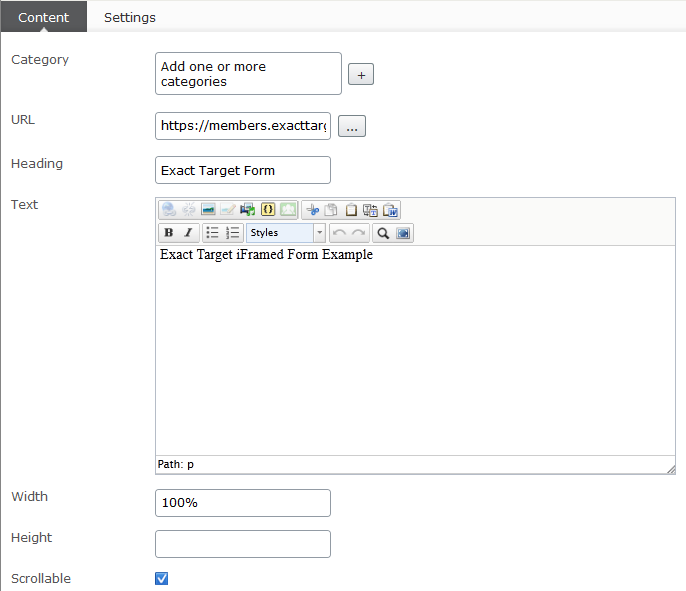 - Scrollable – Whether or not the iFrame should include scrollbars