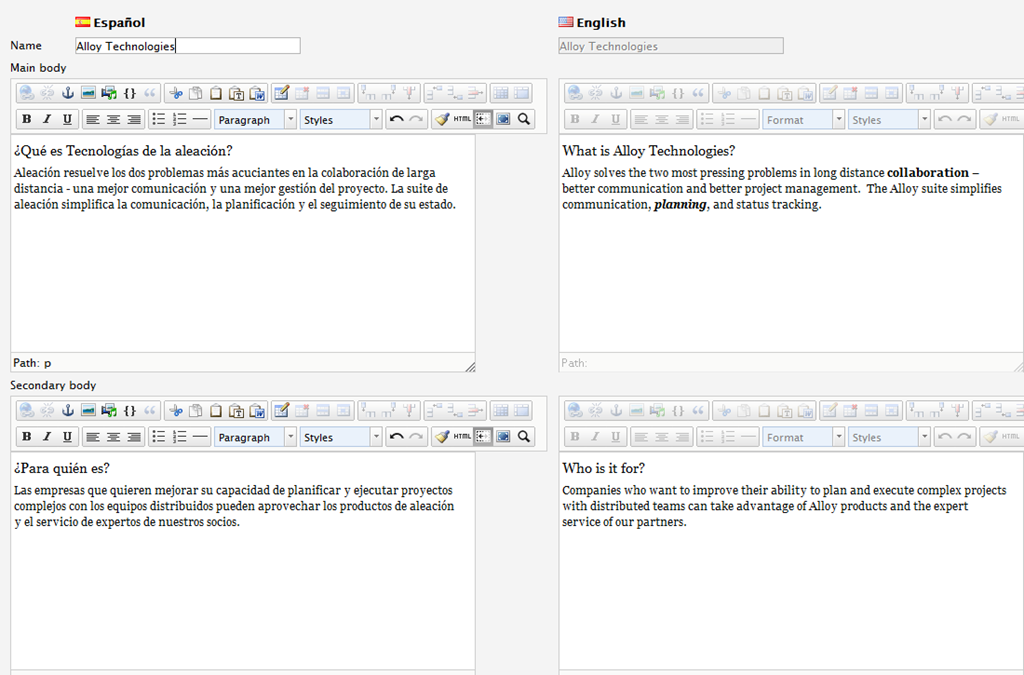 Figure 3 - Editing Language Variations Side by Side