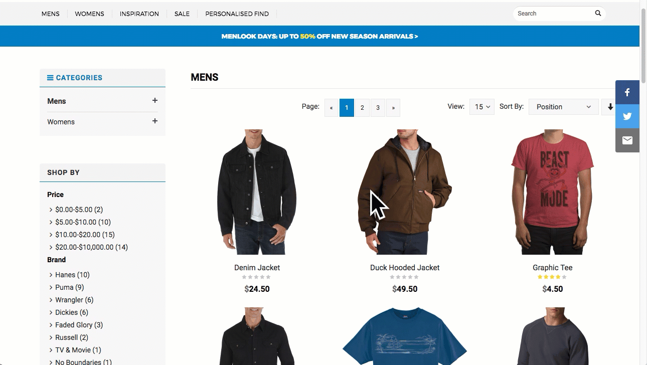 Here is an example, where a user has viewed several expensive puma products. The developers has created a recommendation ordering view, to help the visitors.