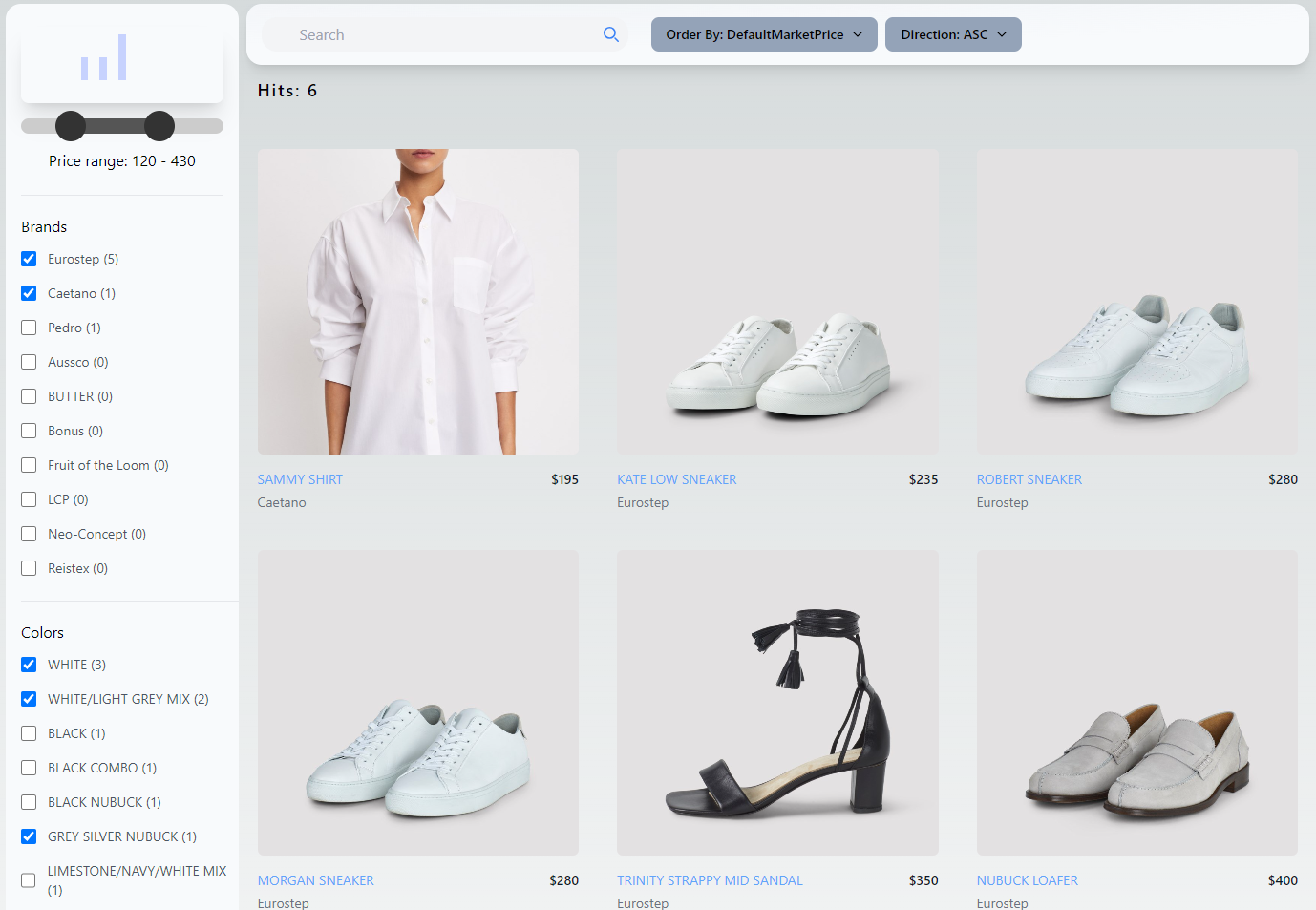setorderBy('DefaultMarketPrice')