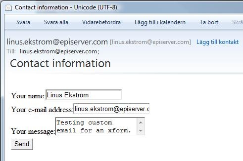 Back from a half year of parental leave I started yesterday reading some forum posts. One old thread that had been added to recently contained several requests to alter the appearance of the email body when sending a form posting as an email (the standard functionality is just to write the data as a textual name value collection). I had a feeling that this could be done without putting that much effort into it so I started coding and have come up with a solution that can be used to get started implementing this for your site. There are some issues that as not dealt with in this example: