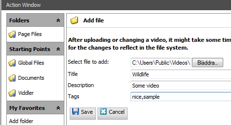 Since we’re speaking with the Viddler API you can upload directly into your Viddler account from the EPiServer UI.