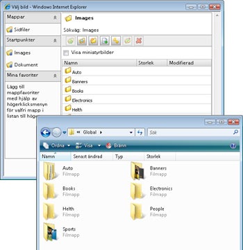 Documents - is an example of a public folder structure where EPiServer version of the files is enabled. This means that an editor can handle multiple versions of the same document / file in File Manager. Through integration with MS Office, you can edit documents directly from the file manager and save it as a new version. This kind of folder is also common to store documents in if you are using EPiServer templates for Work Rooms.