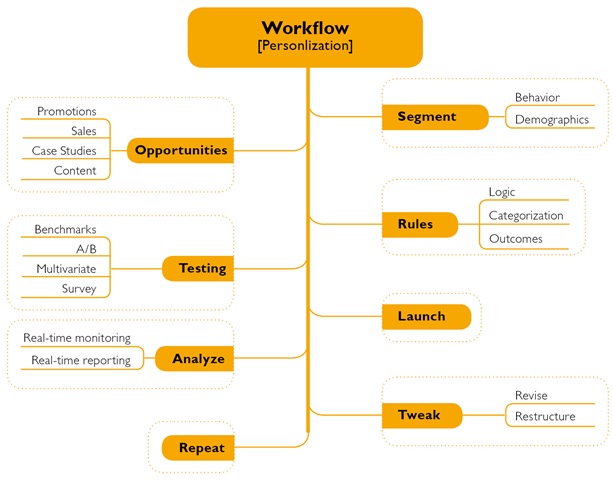 2) Assemble the right team! The web editors will have day-to-day control of the content and should also contribute to the personalization strategy and execution, your development team will have to know what’s going on at every stage. Consider community owners or your social media team – if you run a forum or social feature, the people who run the community are valuable assets. Product management will have a view on how to personalize the product pages. Sales may want to personalize the key stages of the web funnel and customer may want to personalize the experience for VIP customers. Involvement from the right people is a key factor in your success.