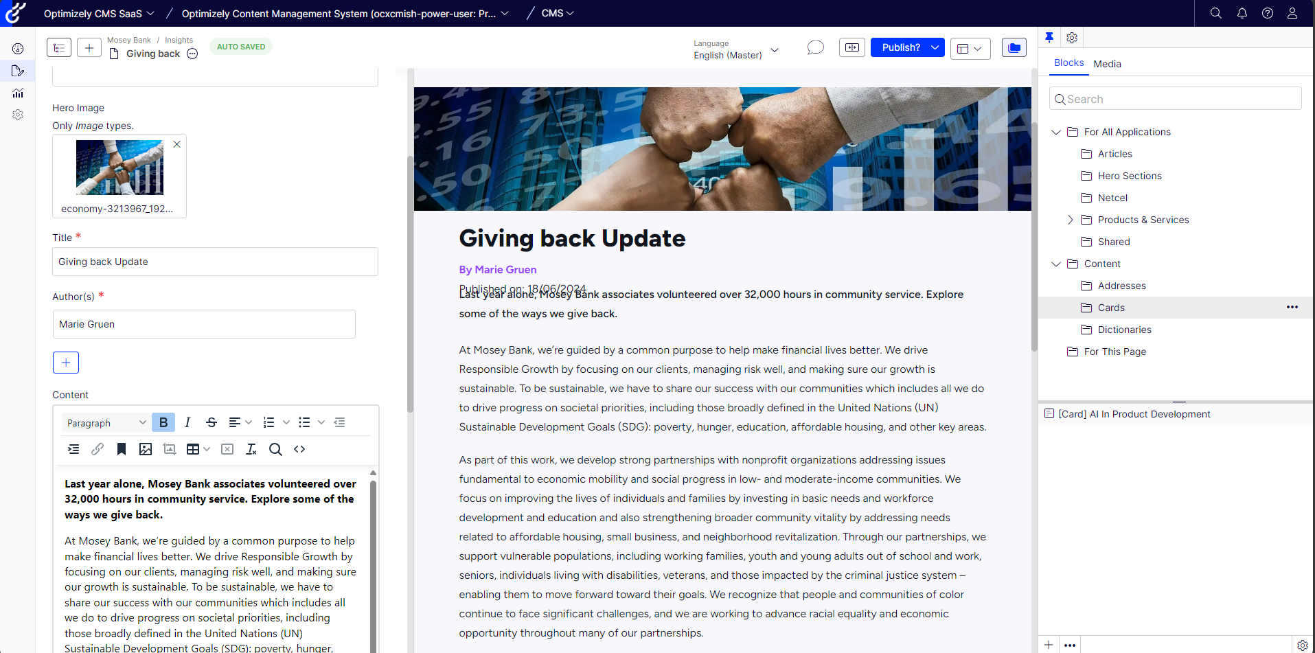 I’m thrilled to see that Optimizely has now enabled Visual Builder for OG Pages and Blocks within SaaS CMS, and I’m guessing this will become standard for CMS13. Previously, Visual Builder was only available for Experiences, forcing us to revert to traditional on-page editing which was somewhat clunky or use the "All Properties" view, which didn’t provide a great preview experience.
