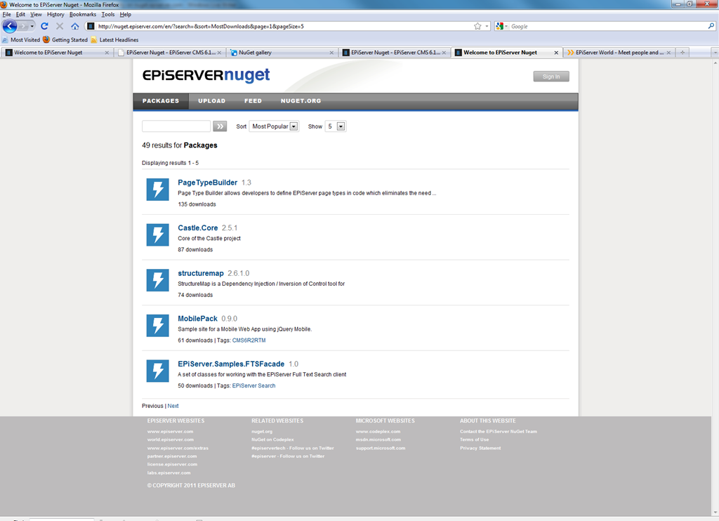The first round of upgrades to nuget.episerver.com took place last night. The site now has a cleaner design as well as package searching and sorting.