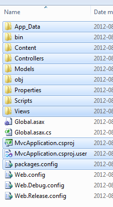 4. In the parent folder of the MVC files there is a folder called packages. Copy that to the parent folder of the site files. This is needed in order to keep the references in the .csproj file intact.