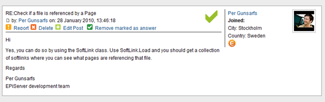 This has been implemented so that it is quicker to find answers to your problems as well as to answer unanswered questions. We are also working on a Community recognition program so you will get points for contributing to our EPiServer Community, and forum posts marked as answered will of course receive more points.