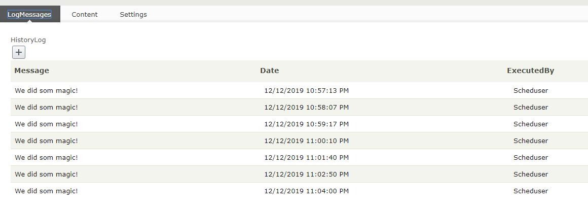 To get everything up and running we need a specific page type which have all the settings we want and the model will contain all code that do the actual scheduledwork and handling logging. We also need an initalizationmodule hooking up to the PublishingContent and PublishedContent events. And of course the schedulejob handling future publishing of content must be up and running.