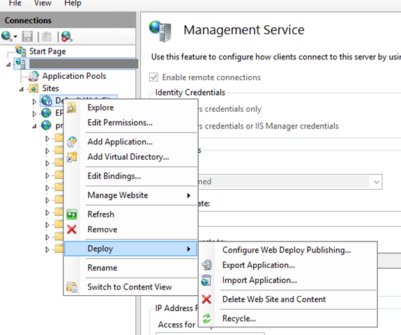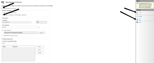 Go to the IIS and EnableRemoteConnections for the Management Service.