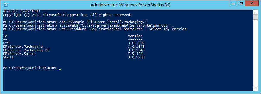 Add-PSSnapin EPiServer.Install.Packaging.*