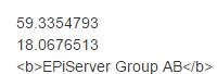 <div>@Html.DisplayFor(x => x.Latitude)</div>