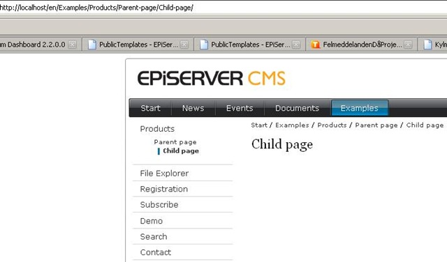 If we look in episerver now we can see our two pages under the page we definied as an entry point.