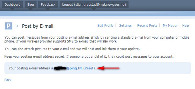2. Grab your private Ping.fm email address