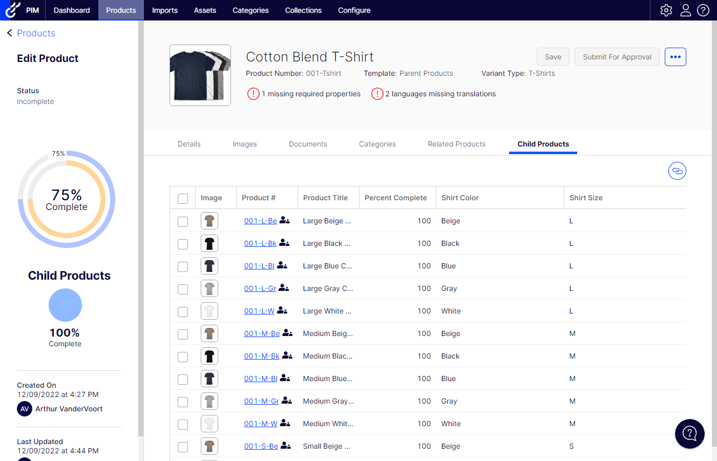 - The customer will review the variant setup in PIM prior to the next time data is published to commerce.