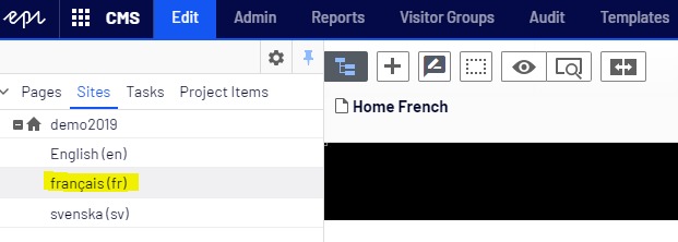 as we finished the third step, now we need to create the pages in the target language. You need to go to the second tab Sites and select the new target language that you have already set up in the first step. In this demo, I am using French.