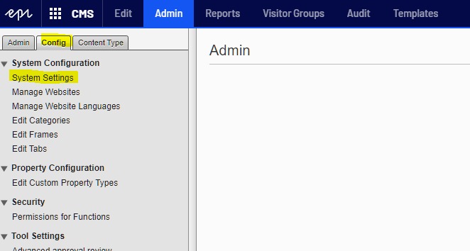 Log in as Admin. Go to the Admin section and click the second tab Config.
