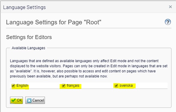 Now if you got to any of the other subpages, you will see that it inherits the same language settings as in the setup root node.