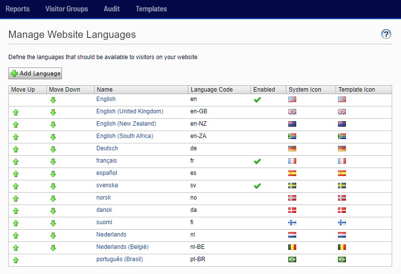 If you cannot find your language (or Locale), Click the Add Language button at the top. Now you have all the languages available in the System to select from.