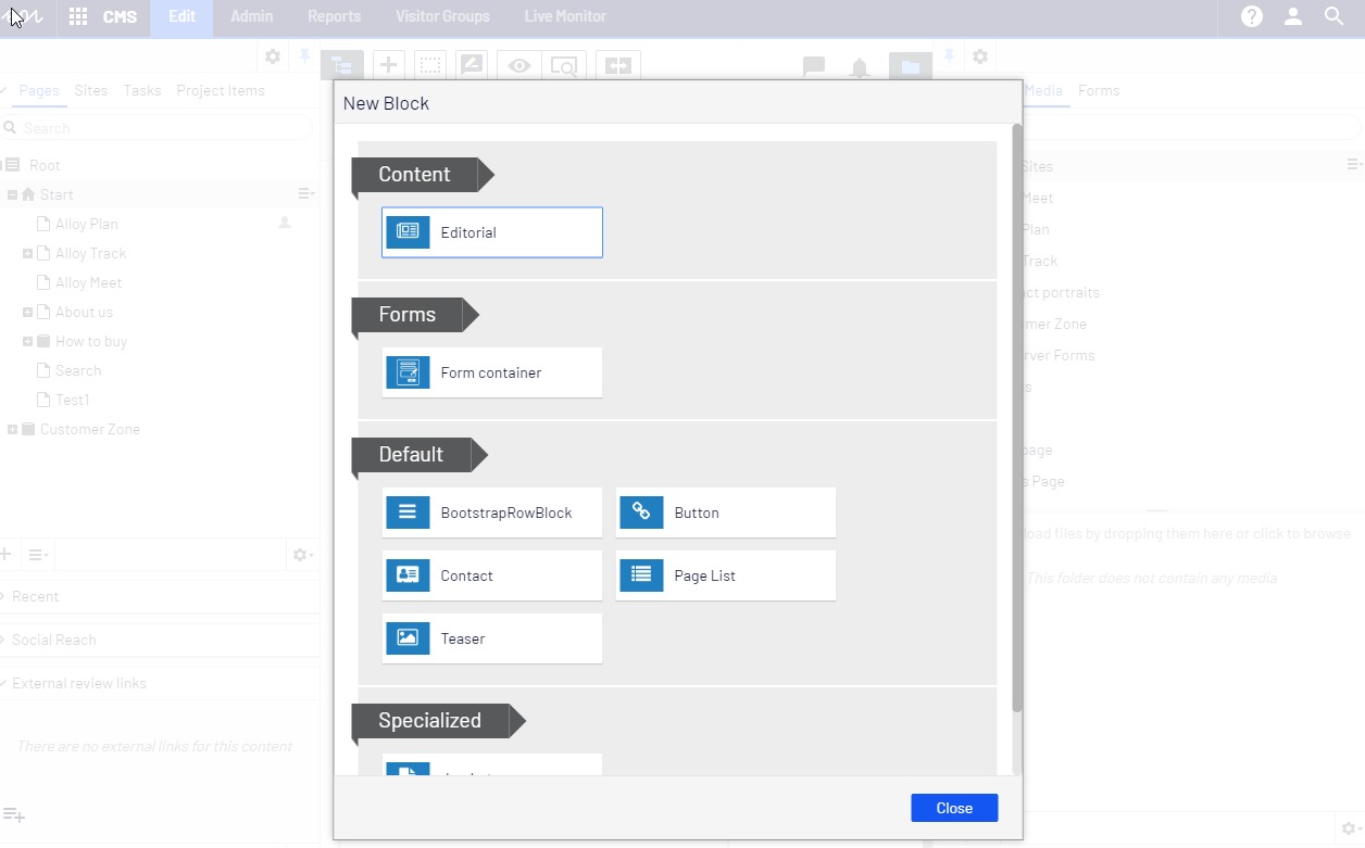 Previously, the editors were able to only inline edit existing blocks. However, whenever a new block was needed then they still had to use the default form, that caused the current content context to switch.