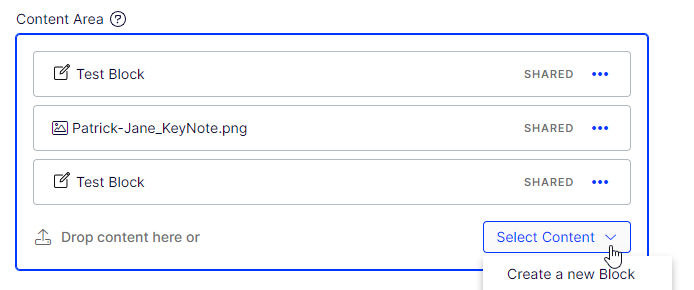 If you have existing local or shared blocks which you would like to inline into ContentArea properties then you have two options: