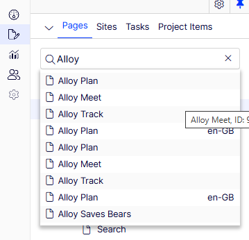 In the example below, we add the start page name as a suffix to the page title in the results. This makes it obvious which site a page belongs to. Pages that are not under any site start page appear without a suffix and show up at the top of the results, since they are not associated with any specific site.